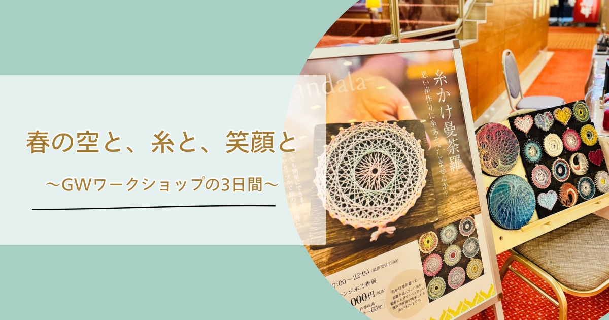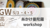 糸かけ曼荼羅作り。ちょっと地味で大人向けのワークショップかな?と思っていましたが、お子さまから大人の方まで